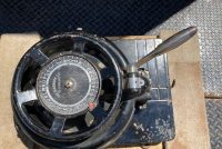 Antique, The Diagraph Stencil Machine in as found condition. Heavy cast iron construction. Appears to be in working condition. Measuring in at 24″ diameter x 14″ wide x 10″ high. What every man cave should have……..