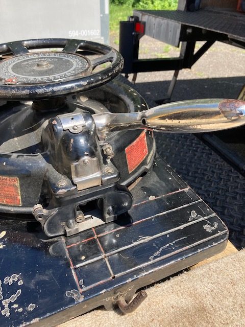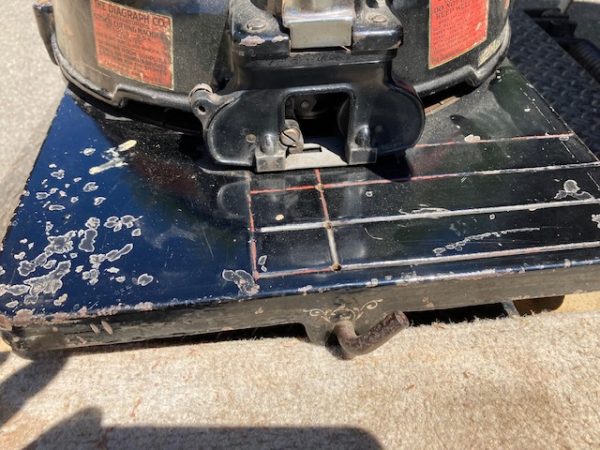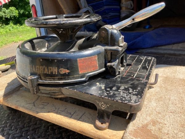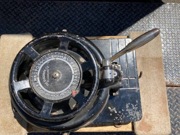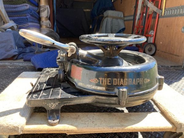 Antique, The Diagraph Stencil Machine in as found condition. Heavy cast iron construction. Appears to be in working condition. Measuring in at 24″ diameter x 14″ wide x 10″ high. What every man cave should have……..