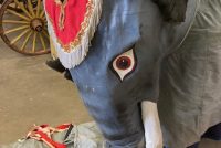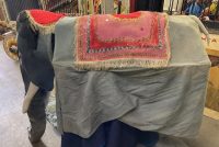 Antique two man Elephant costume from A.T. Jones Company Baltimore,MD in as found condition. Elephant will need some minor restoration to the ears but overall looks decent for its age. Costume is made of paper mache and other materials. A.T. Jones was the oldest costume prop company dating back as far as 1868. Check it out on Google for more information