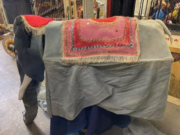 Antique two man Elephant costume from A.T. Jones Company Baltimore,MD in as found condition. Elephant will need some minor restoration to the ears but overall looks decent for its age. Costume is made of paper mache and other materials. A.T. Jones was the oldest costume prop company dating back as far as 1868. Check it out on Google for more information