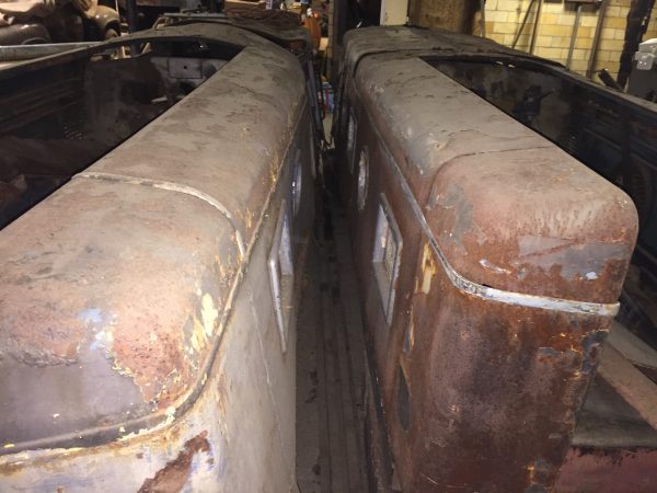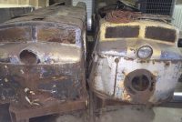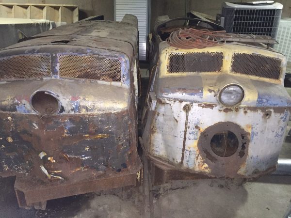 2 rare 1950’s amusement park Miniature Train Co. G-16 train locomotives in as found condition. Both locomotives will need restoration. A lot to work with but not sure what parts are missing. Please see link below: