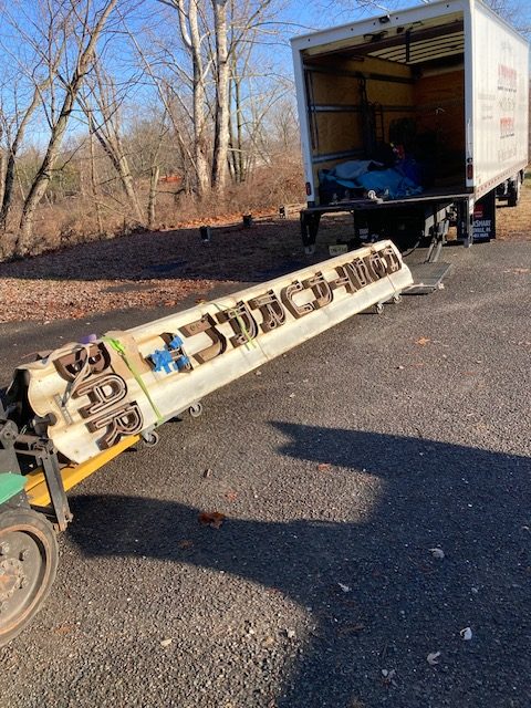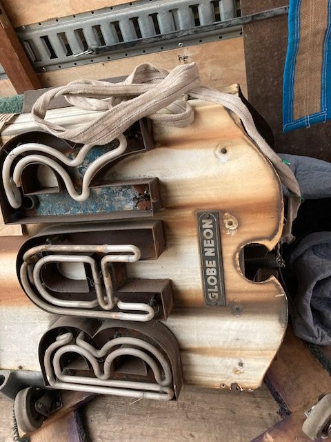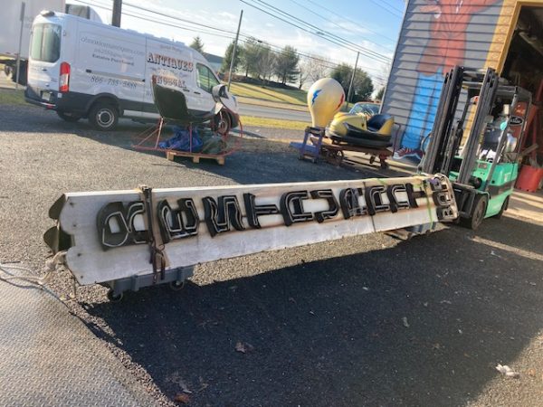 Antique Weathervane Inn Bar Restaurant double sided porcelain over steel front neon sign in as found condition. Will be going to neon shop for some restoration and available sometime during the spring. Heavy construction measuring in at approximately 16′. Sign was located in New York City Midtown on E29th Street between Madison & Park Avenue.
