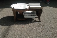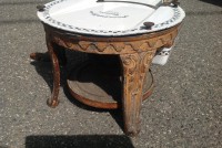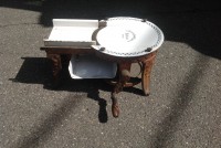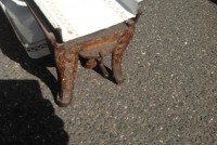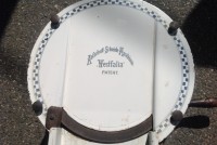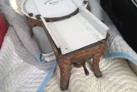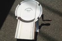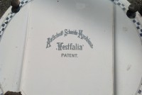 Antique Westfalia German cast iron and porcelain butcher shop meat slicer in as found condition. Looks to be complete with the exception of a few screws that are not original. Will need to be oiled but works fine. Nice kitchen item…………..