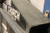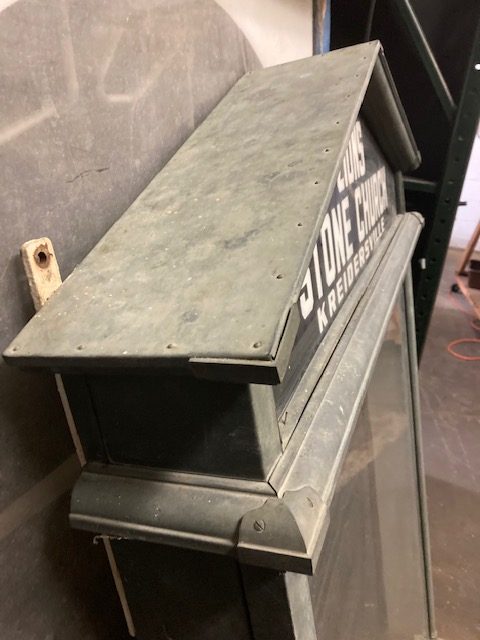 Barn Fresh antique Zion’s Stone Church Bulletin beard in as found condition. 5 tall to frame point x 36″ wide x (39″ roof point to point) x 6″ deep. Church basement find needing a good cleaning to make it “POP”. Complete with changeable metal hanging letters included.