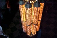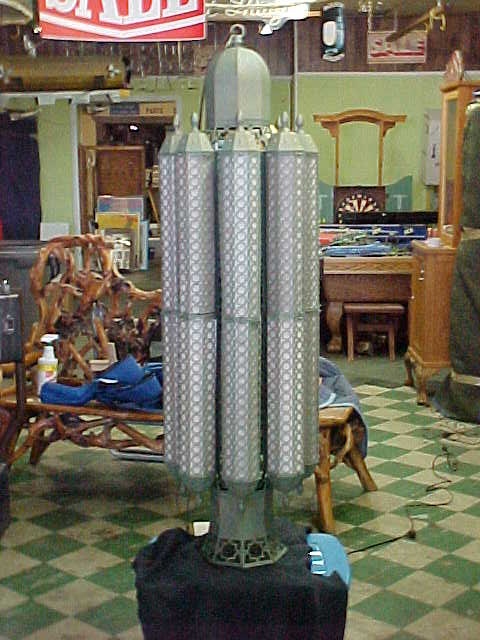 These chandeliers are just fabulous. Found in storage from the now closed, Haddon Hall in Atlantic City, New Jersey. Two sizes are available and the measurements are: 62″ tall by 20″ diameter, 36″ tall by 20″ diameter. Just a great art deco design. Please call or email for availability and prices……….