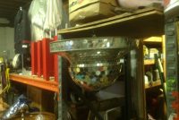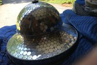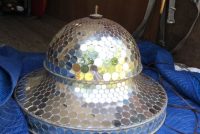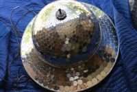 Vintage art deco dance hall revolving mirrored ballroom ball in as found working condition. Nice overall condition needing a good cleaning with a few cracked mirror tabs measuring 21″ tall x 30″ diameter. Grab a partner and lets dance………….