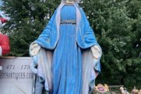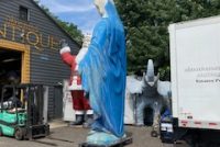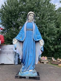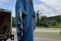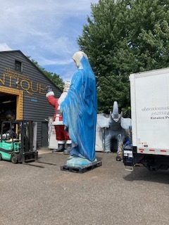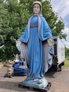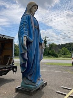 Giant 16′ fiberglass statue of the Blessed Mother from the Broadway show “Sister Act” in as found condition. Heavy fiberglass construction mounted on a steel base. Overall in very nice shape. You may never see another, so act now if interested……….
