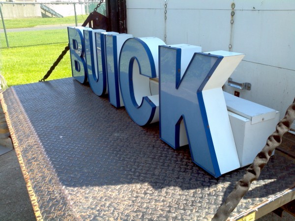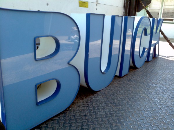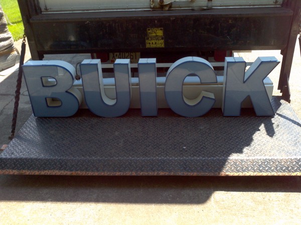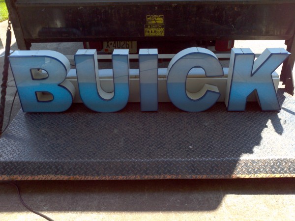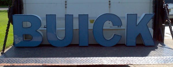 Buick car dealership back lit channel letter neon sign in working condition, measuring about 7′ long. From a Philadelphia dealership, now closed. Nice addition to any automotive collection……