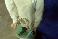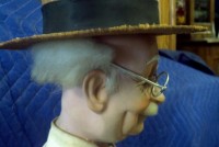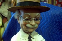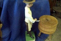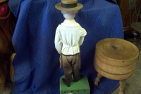 Beautiful, old, vintage Butcher Shop automaton window display in working condition. The little guy is 42″ tall, head moves as his left arm slices sausage. Glass eyes move also. Real butcher block. Great condition for displaying in almost any room or addition to any advanced collection………
