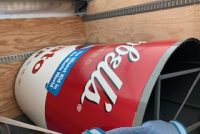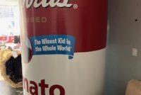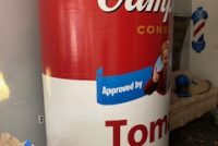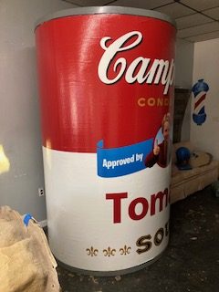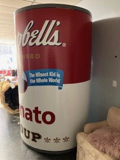 Gigantic authentic Campbells Soup “The Wisest Kid In The Whole World” huge promotional soup can in as found condition. Promotion took place in New York’s Times Square district and hosted by Campbell Soup. Can measures 8′ tall x 5′ round made of steel and heavy composite material with vinyl lettering. Great conversation piece and a must for any seasoned collector.