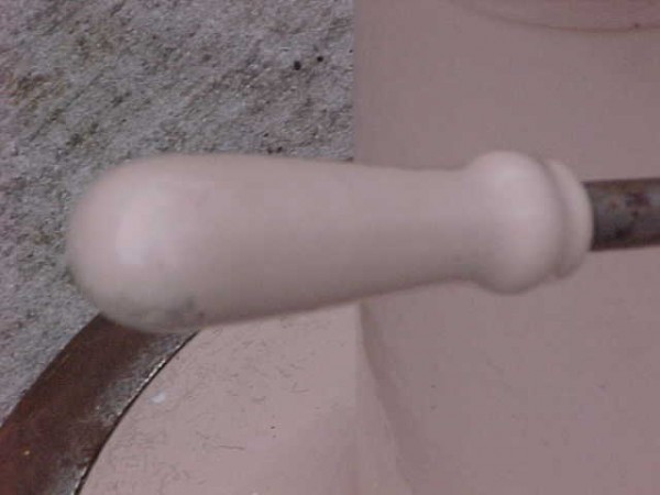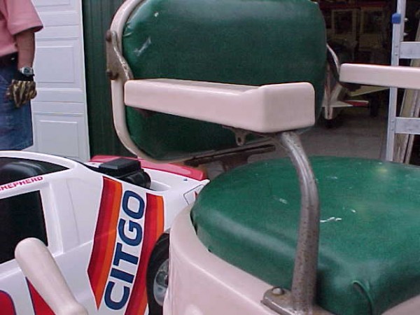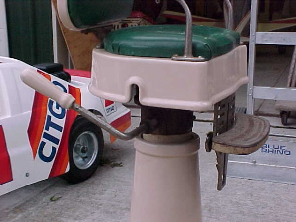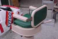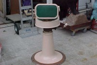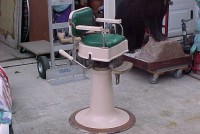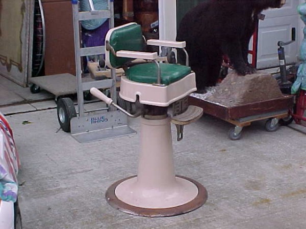 Berninghause child’s barber shop chair. No chips to the porcelain and the hydraulics work fine. Will need a good cleaning and maybe some tightening and she will be ready to go. Think of the kids who sat in this chair………