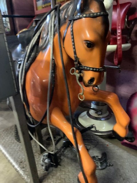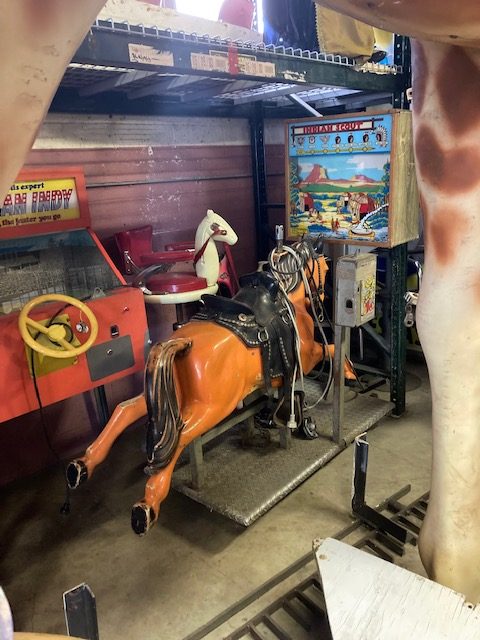 Coin operated All Tech Industries Indian Scout penny arcade machine in as found condition. Not tested but looks complete with the exception of the gun that is missing.  A similar style gun will be included needing retrofitting to operate correctly. Indian Scout is a sought after coin operated ride………