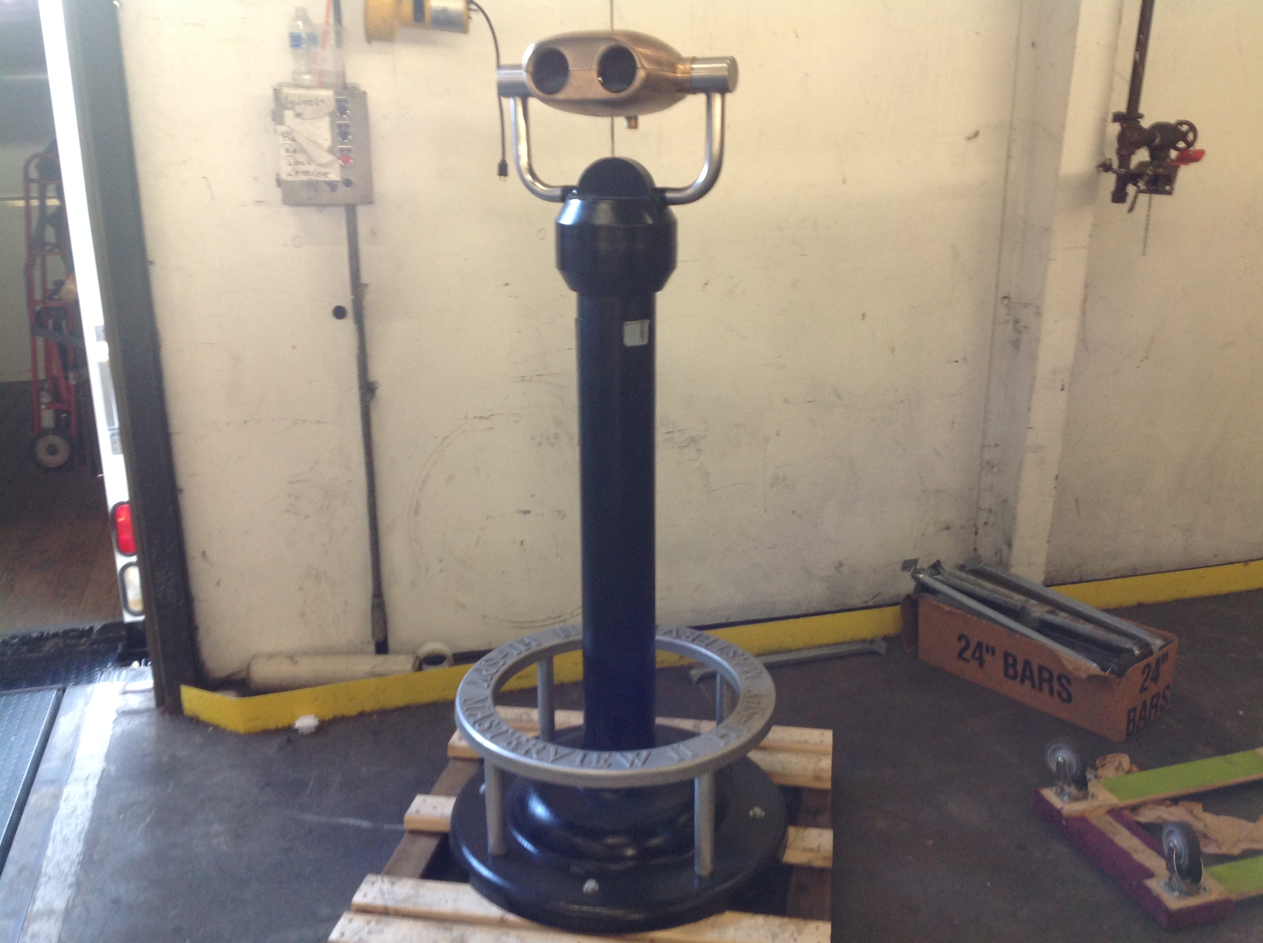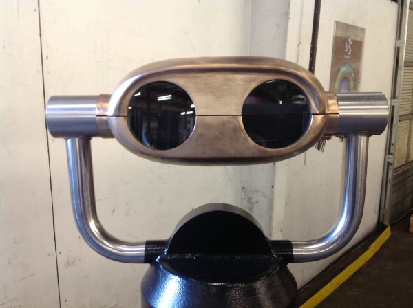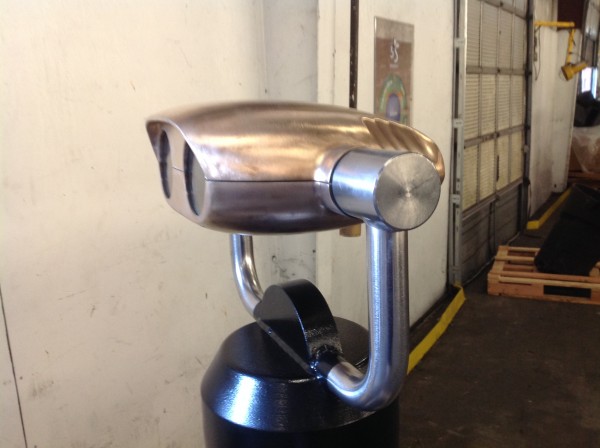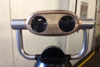Niagara Falls binoculars, with the coin mechanism removed by the manufacturer, in working condition. Removed from the Falls recently and refurbished for sale. Heavy cast iron base with bronze viewer. Power 10X…………