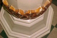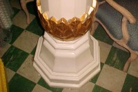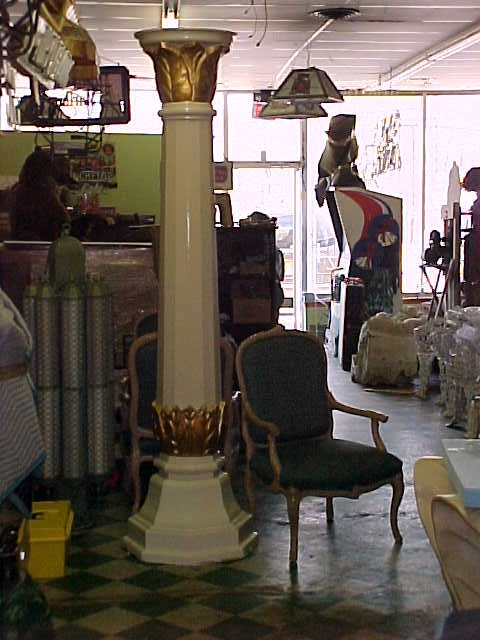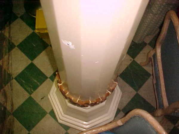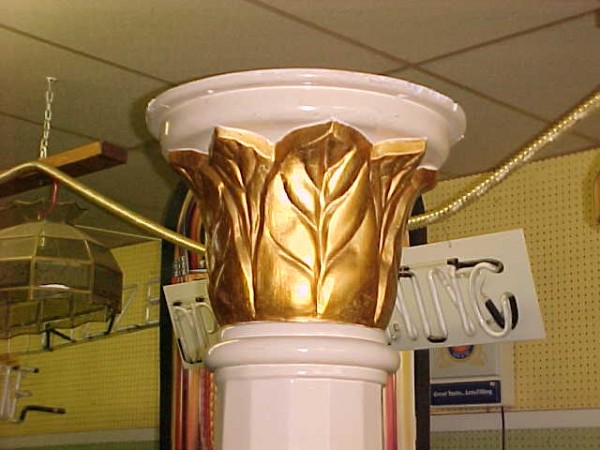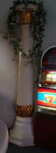 Greek pillar column from the Atlantic City, TAJ Mahal Casino. Measures 8′ tall and the base is 26″ in diameter. Made of heavy plaster with good details.A few minor chips on top and bottom edges. Would accent any room in the house…………
