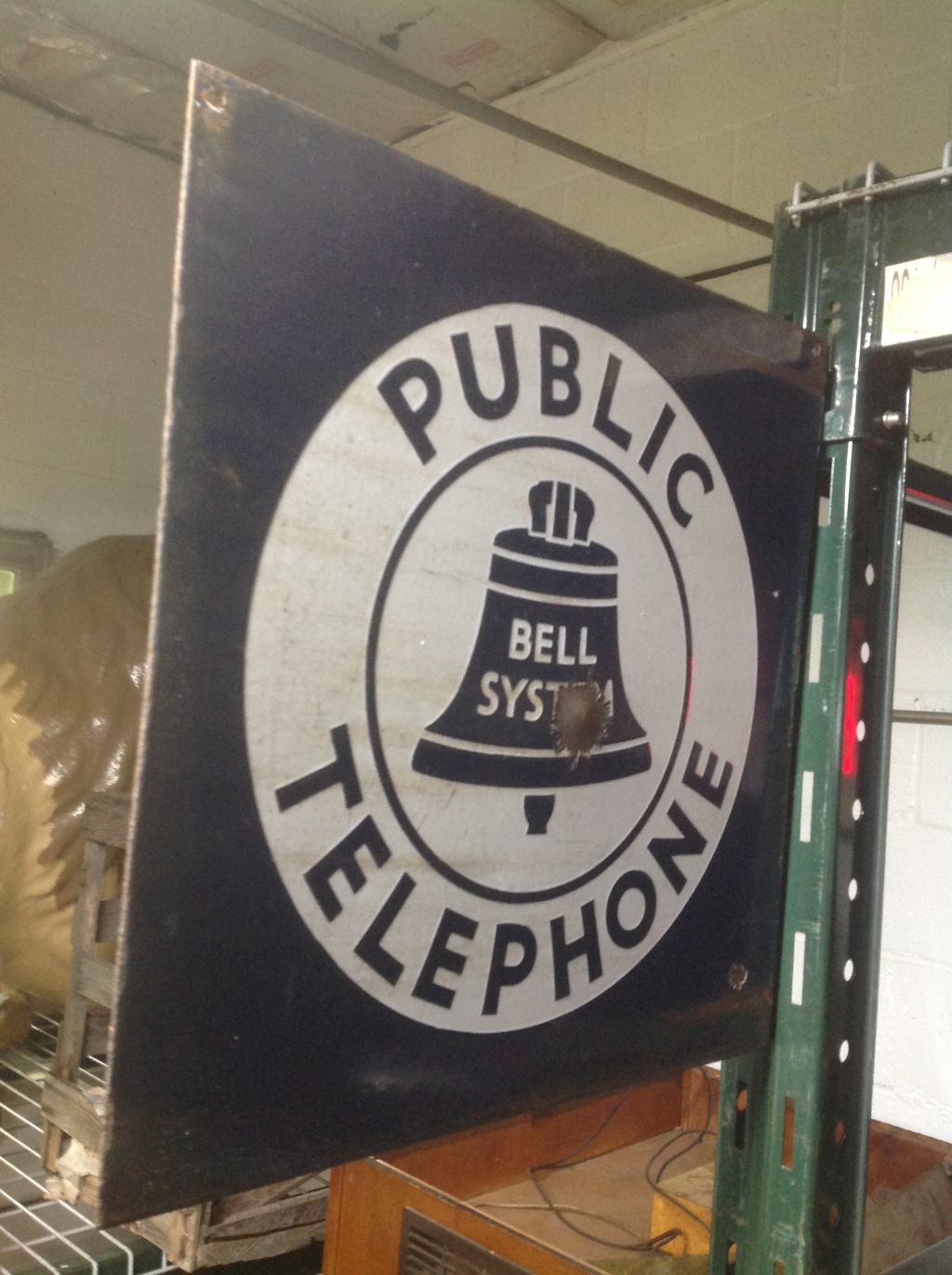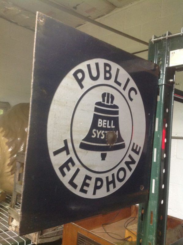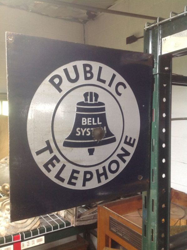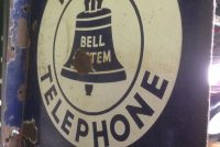 Antique double sided porcelain flanged Bell System sign in as found condition. Great graphics with a few minor flaws but overall a very nice sign for displaying. See pictures below for details…………..