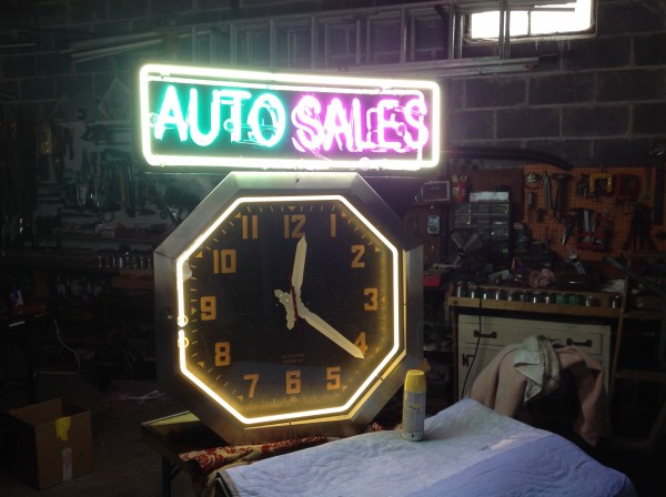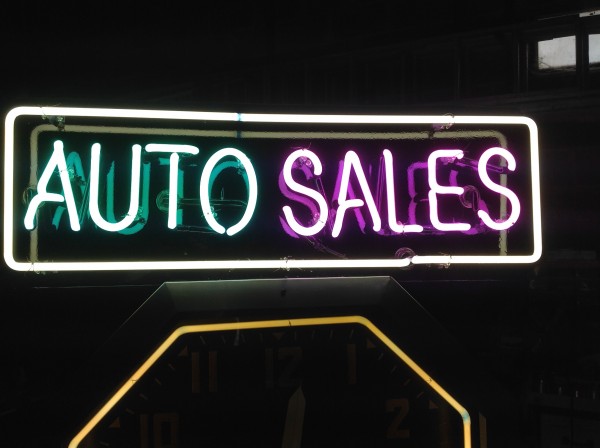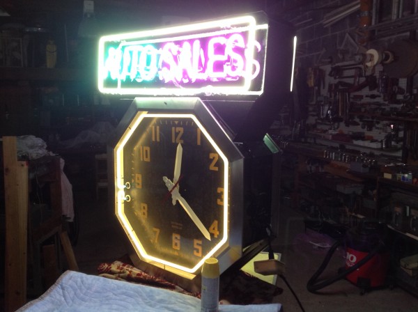 Double Sided Neon Auto Sales Clock