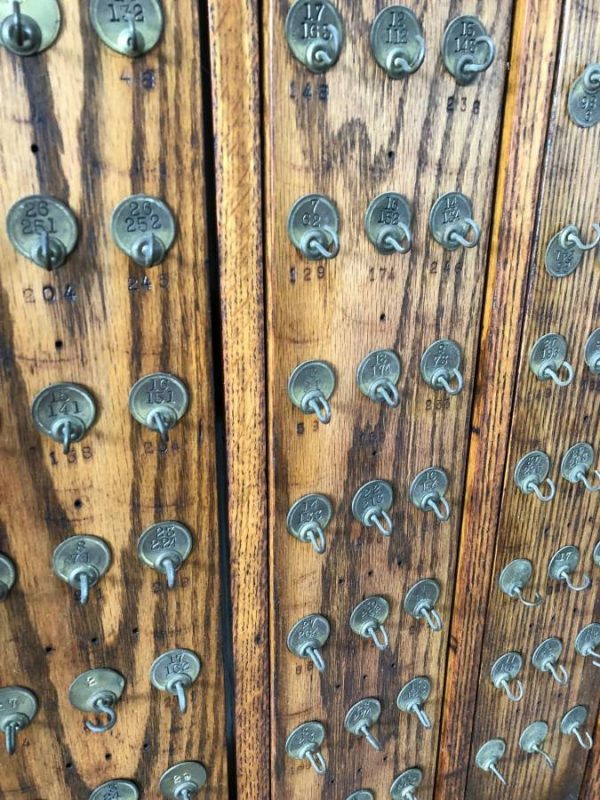 E.H. Sheldon Early 1900s Oak Science Lab Key Holder.