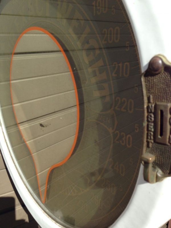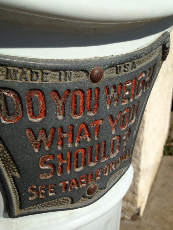 Early 1900’s antique penny operated drug store scale in as found condition. Will need some minor servicing but looks and functions OK. Missing lower porcelain back door but otherwise looks to be complete. Nice graphics, nice porcelain………….