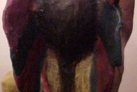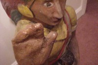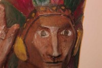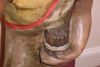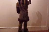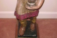 Papier mache cigar store advertising indian. Measures 54″ tall and the base is 15″ x 15″ square. Completely restored. Made from a composite of plaster, horse hair and paper. A cigar smokers dream…………..