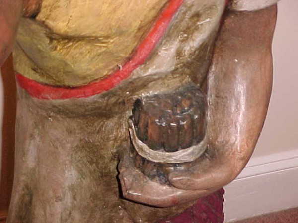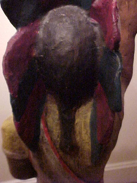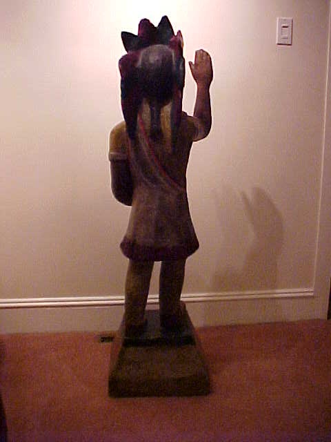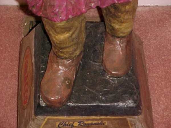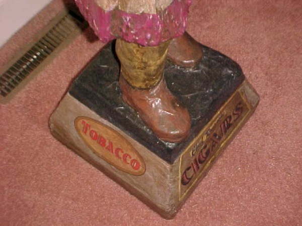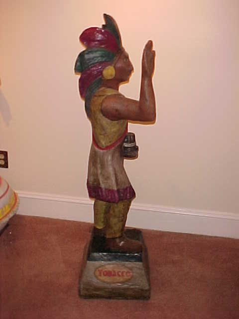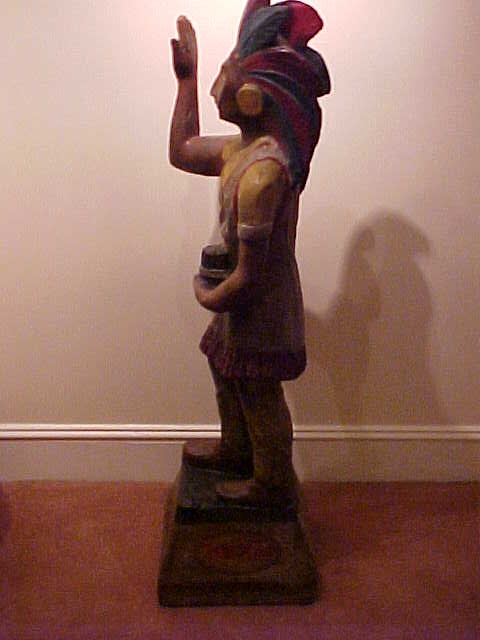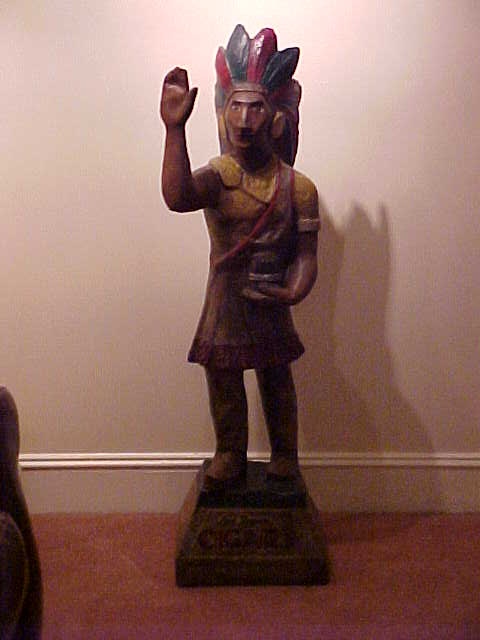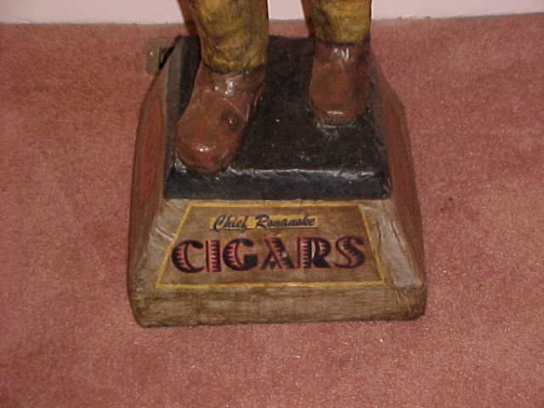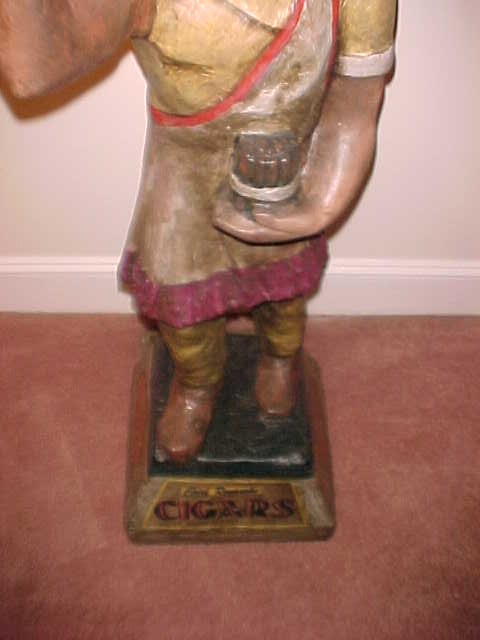 Papier mache cigar store advertising indian. Measures 54″ tall and the base is 15″ x 15″ square. Completely restored. Made from a composite of plaster, horse hair and paper. A cigar smokers dream…………..
