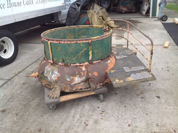 Pair of circa 1940’s R.E. Chambers Turtle Ride tubs in as found condition. Tubs are made of iron, steel and heavy. Chamber’s rides were a staple at most kiddieland parks during the late 40’s and early 50’s. One operated a Sylan Beach, NY. A real treasure. Will need restoration. Buy one or both……….