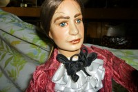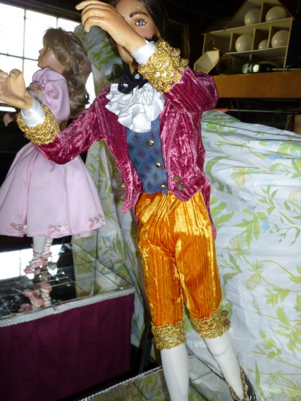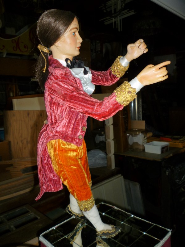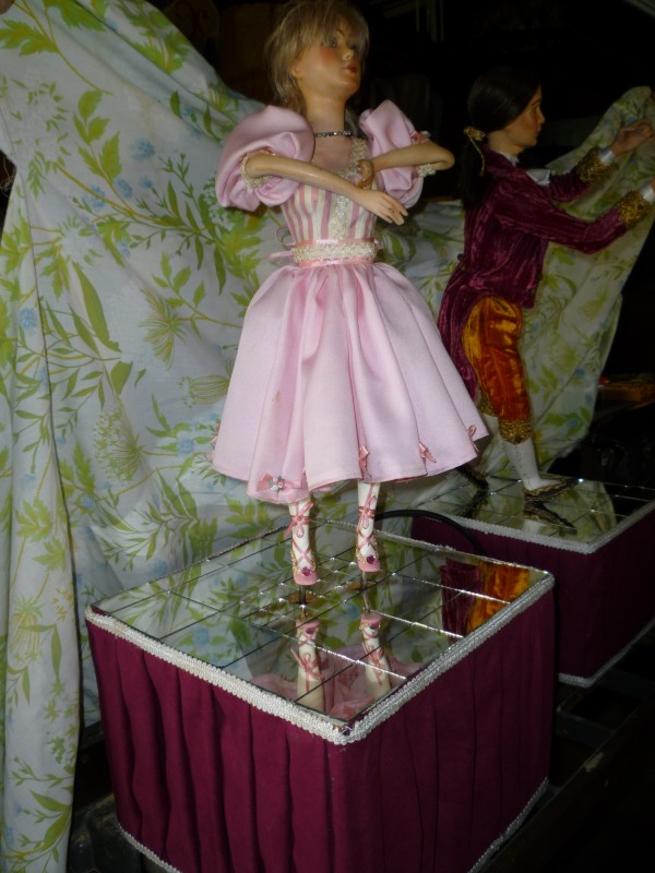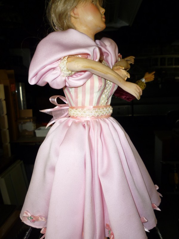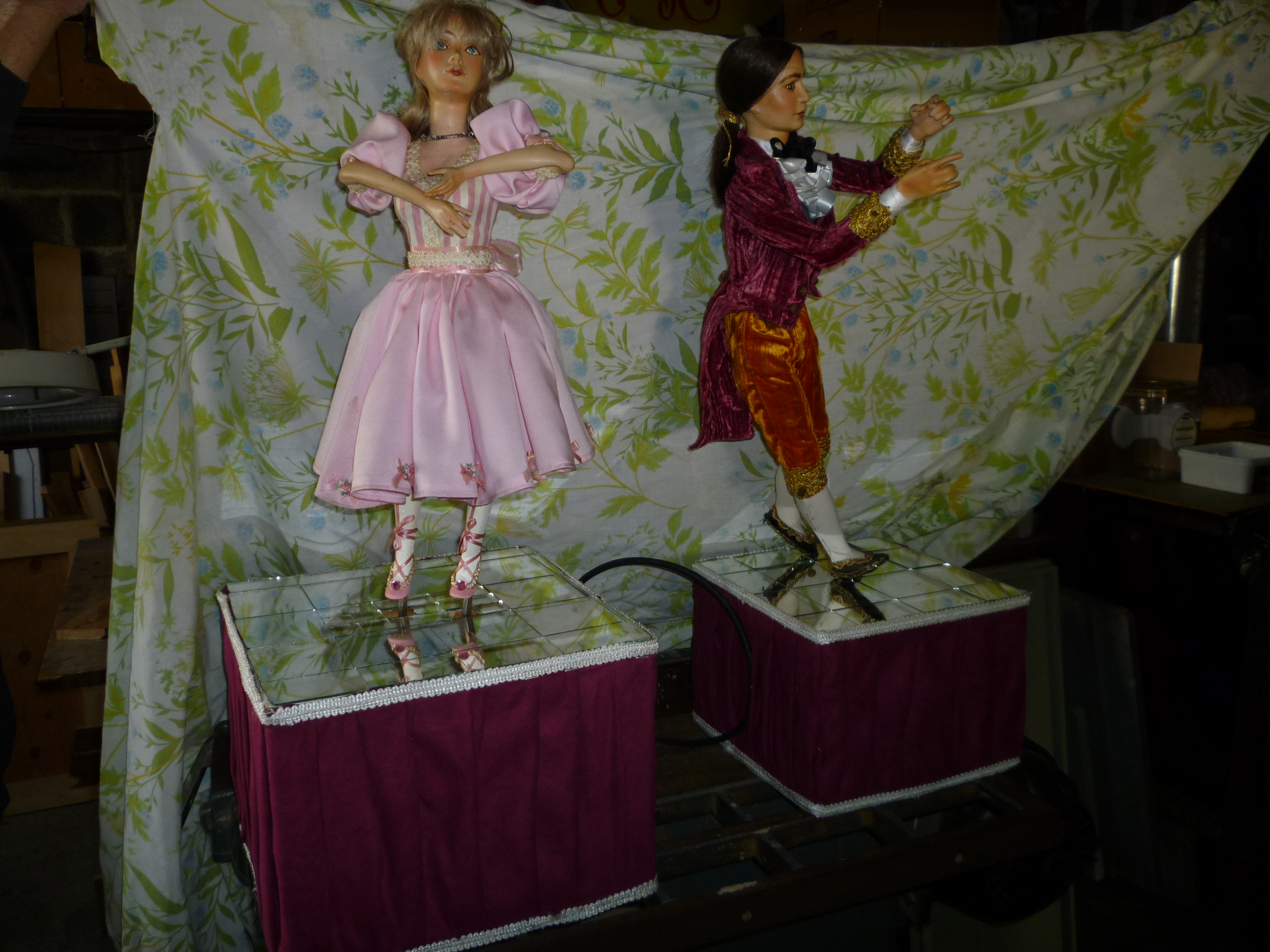 Wonderful early animated store figures in working condition. The lady sways side to side as her fellow bows to her every need. Elaborate detailed outfits. Hard bodies with composition arms and fingers. Motors located beneath the figures. Would look nice in any setting…………….