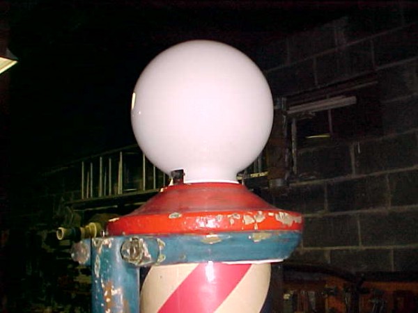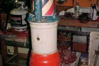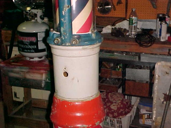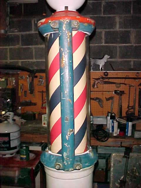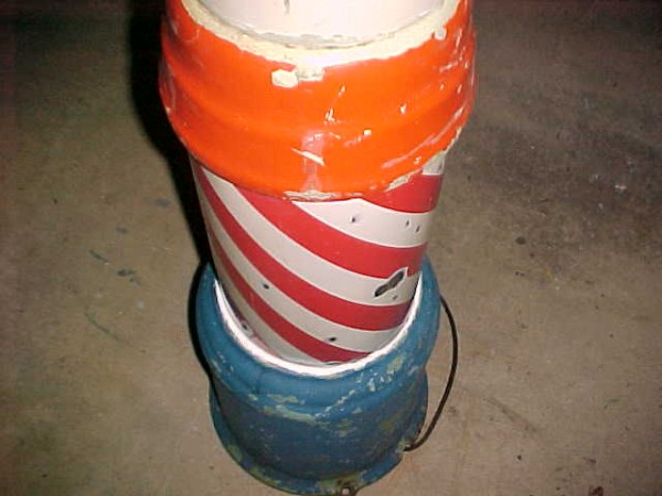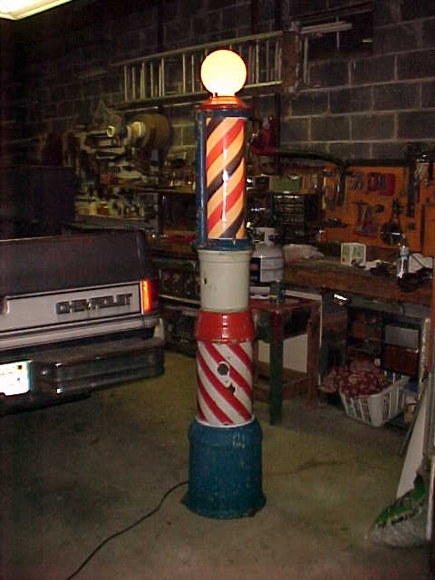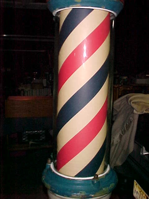 Barber shop street pole representing a wonderful piece of americana. Just serviced, works fine with old paint. Will light up any room……………
