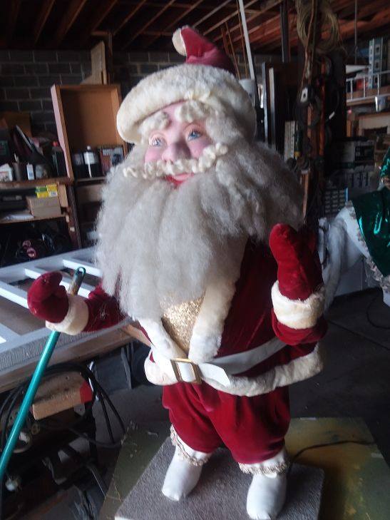Vintage Harold Gale department store animated Santa Clause in as found working condition. Santa is showing his age but overall a fine example of early Gale animation. Santa turns his head as he moves his arms up and down. A great Christmas display…………..