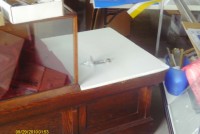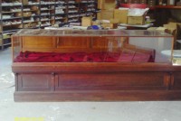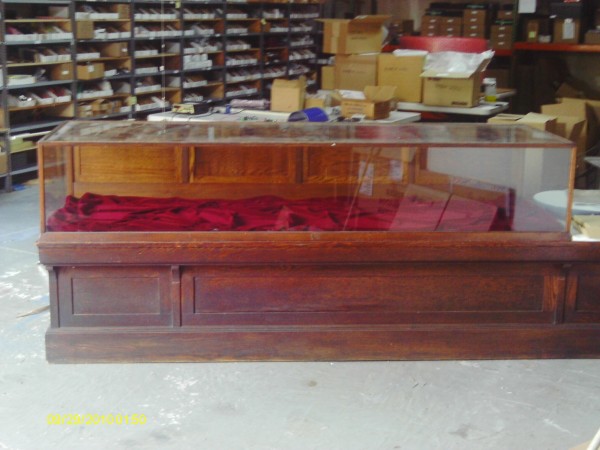 Display case from old country general store located in southern New Jersey. Top section is all glass with pull down doors. The bottom section, that houses the top section is another early county store case with a section of marble on one end. These two cases were married years ago but can be sold separately, if need be. Now priced as a pair……..