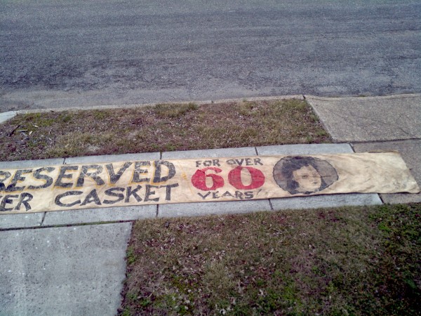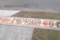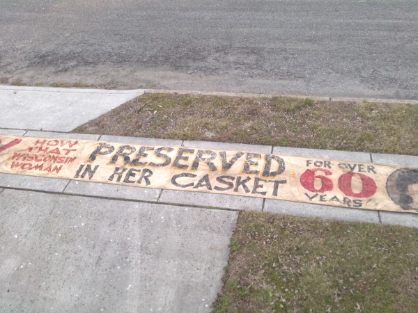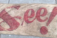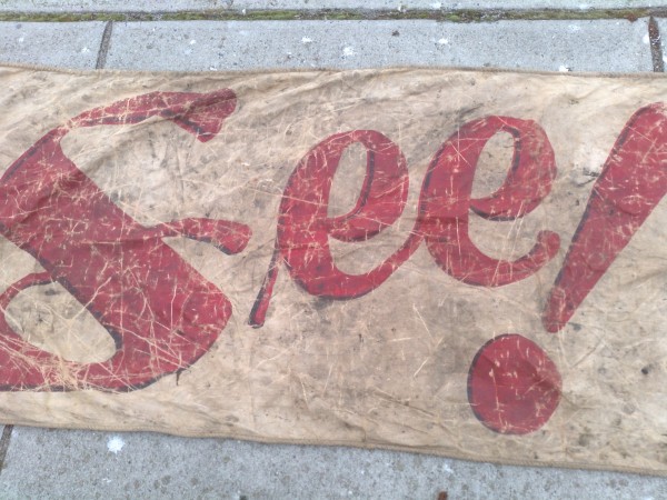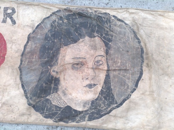 Early canvas mummy sideshow tent banner in as found condition. Measures 27′ x 3′ with some fading. Just wonderful, as it’s hard to find banners of this type any longer. A true piece of americana……..