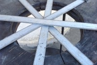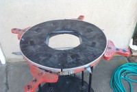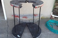 Vintage sideshow magic sword illusion in as found condition. Object is to open the illusion, for someone to stand inside as the magician inserts swords into the openings as though the swords are going through the body. Used on a midway sideshow during the 1970’s, retired and in storage since. Complete with swords. Neat piece and a real attention getter………..