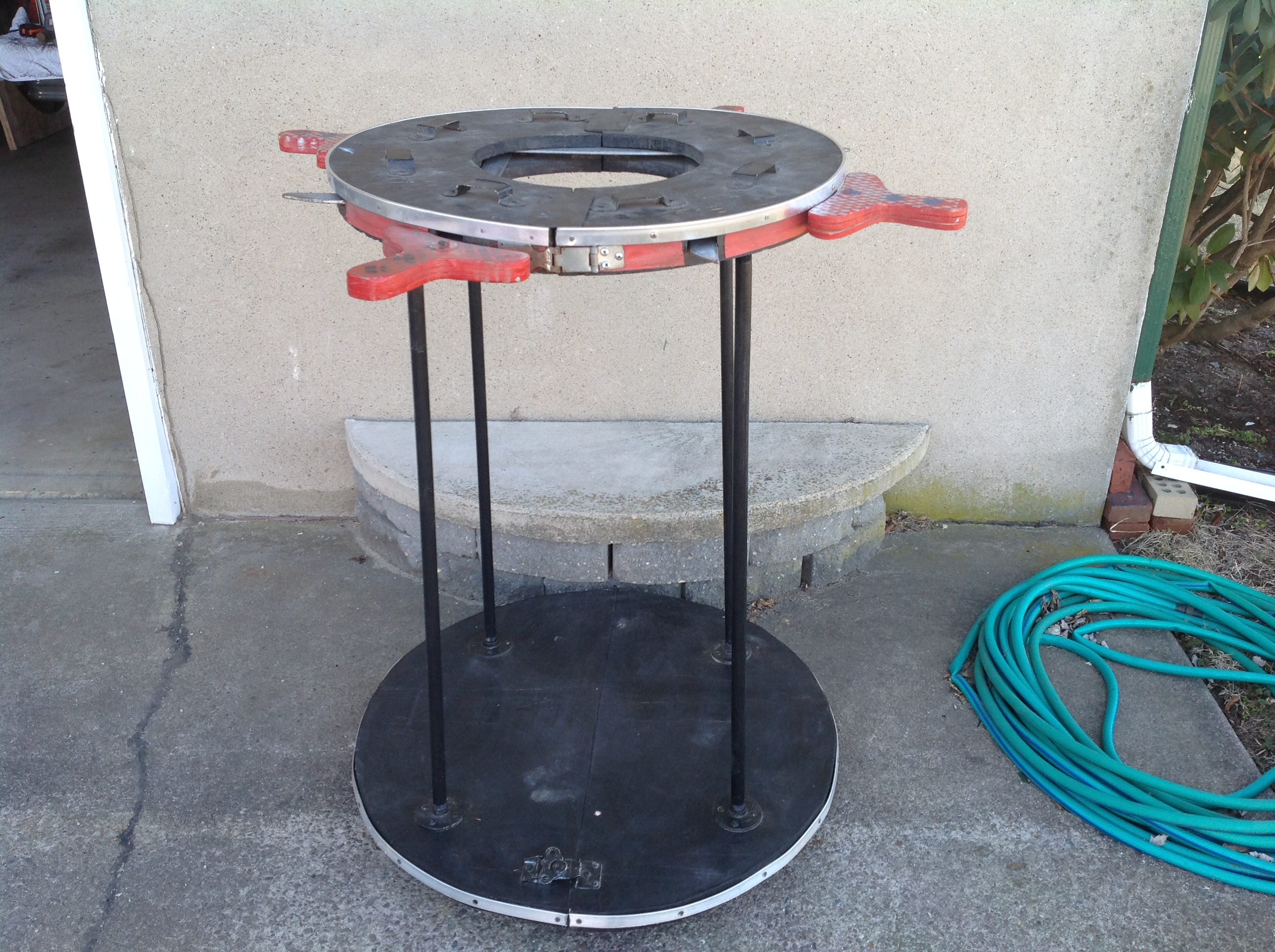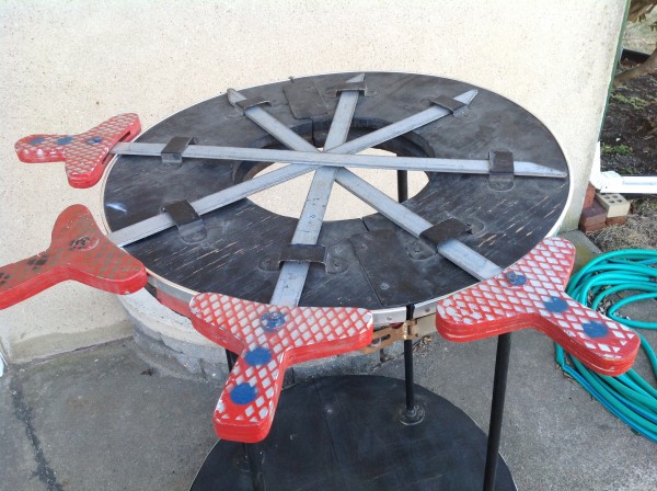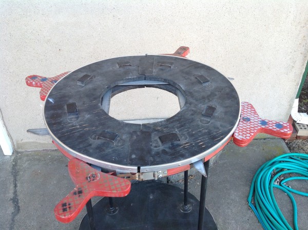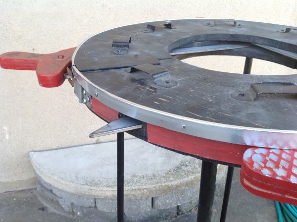 Vintage sideshow magic sword illusion in as found condition. Object is to open the illusion, for someone to stand inside as the magician inserts swords into the openings as though the swords are going through the body. Used on a midway sideshow during the 1970’s, retired and in storage since. Complete with swords. Neat piece and a real attention getter………..