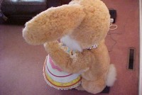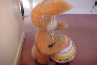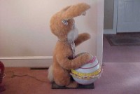 Found in storage, this animated easter bunny will amaze any child. Bunny turns his head, moves his arm, as the egg opens and closes just enough to get a quick peak inside. Measures 36″ tall x 24″ wide x 30″ deep. Great shape for his age……………