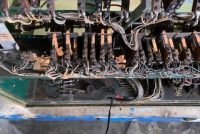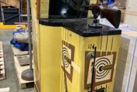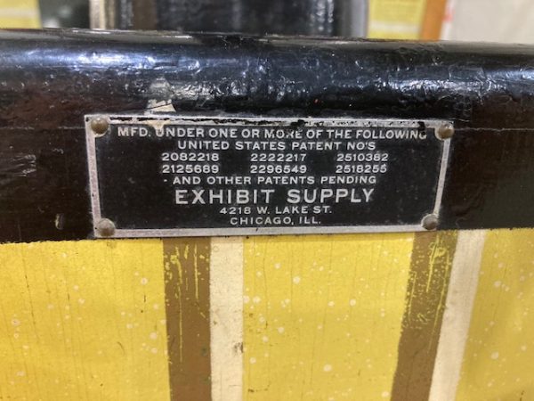 Vintage 1954 Exhibit Supply coin operated penny arcade rifle shooting gallery machine in as found condition. Looks to be complete with nice cabinet graphics needing servicing. Backglass is peeling. No keys…………..