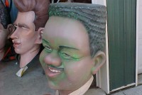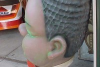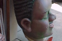 A very good likeness of the famous Fats Domino. Used to hang in a night club in Indianapolis, In. many years ago. Made of fiberglass with a metal inside framework. Complete with built in hanger. Measures 4′ tall x 2 1/2′ wide………