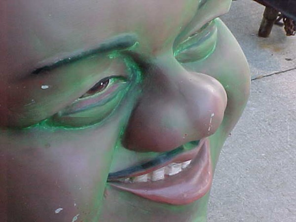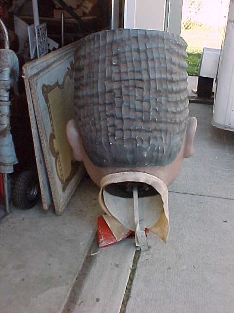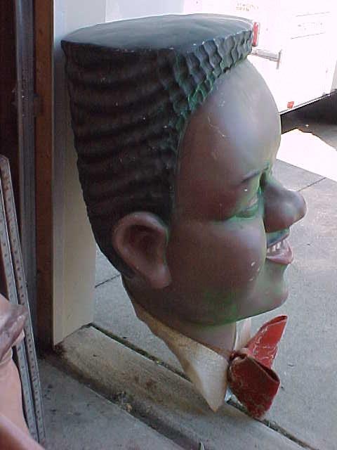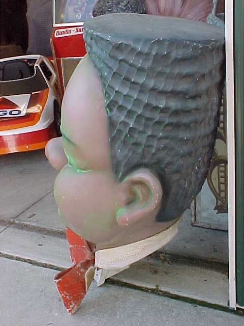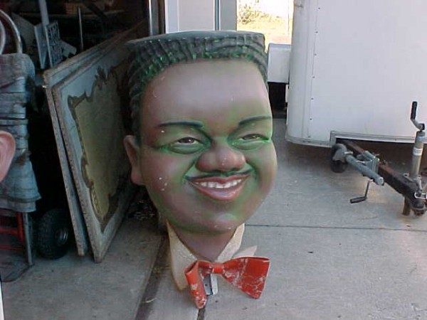 A very good likeness of the famous Fats Domino. Used to hang in a night club in Indianapolis, In. many years ago. Made of fiberglass with a metal inside framework. Complete with built in hanger. Measures 4′ tall x 2 1/2′ wide………