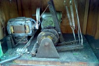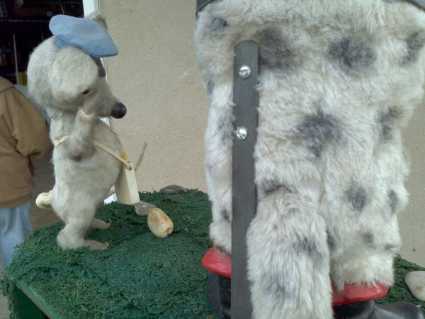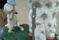 Vintage Fireman dog and mouse mailman store animated display measuring 12″ x 36″ in good working condition. Recently restored by a professional and ready to proivide years of pleasure. Dog moves his head as he directs traffic. Little mouse moves as he delivers mail. A true delight for any antomaton or mechanical display collector…….