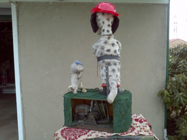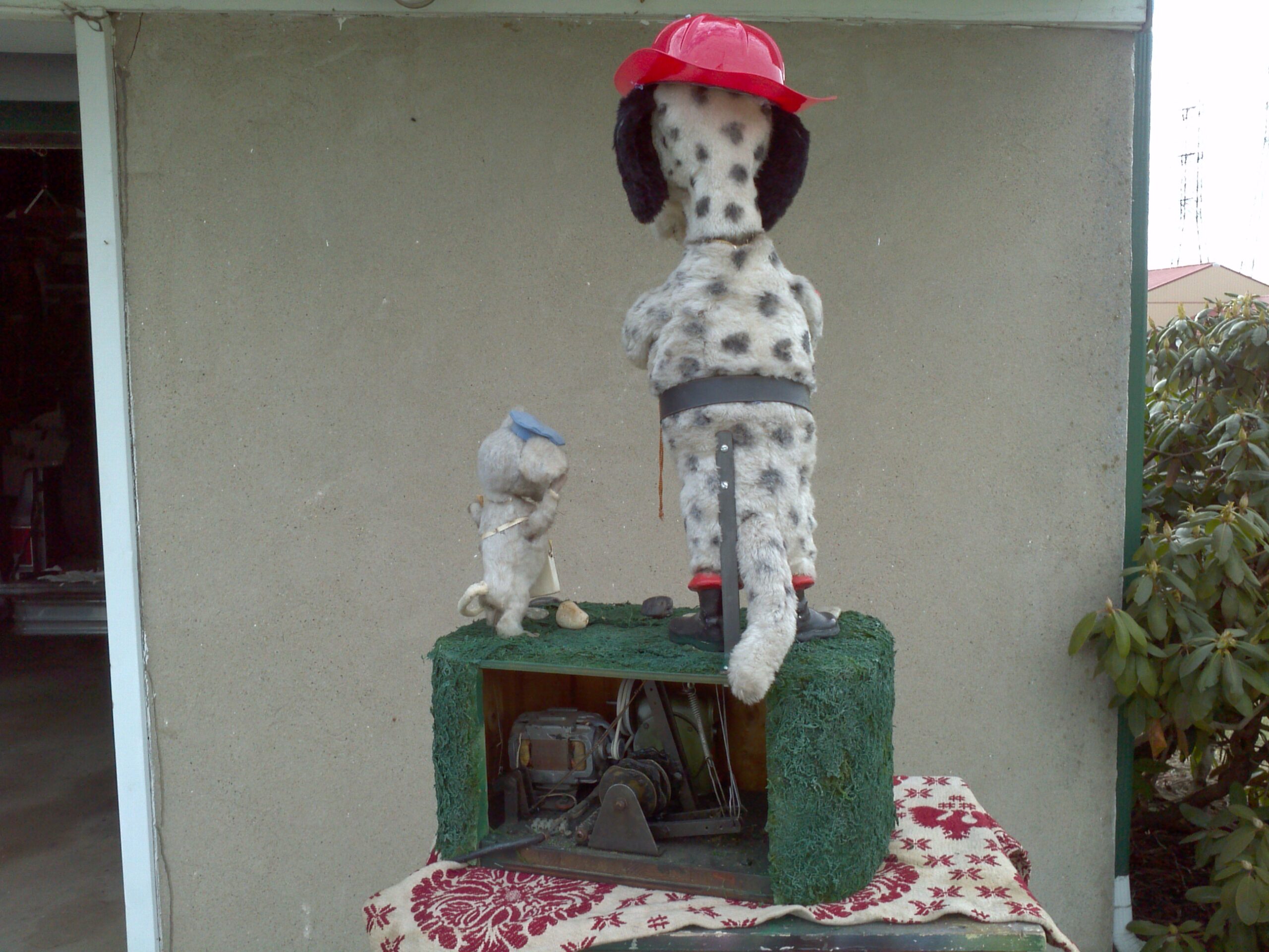 Vintage Fireman Dog and Mouse Mailman Store Display Automaton