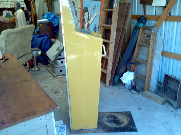 Five cent coin operated penny arcade strength tester in working condition. All original with the exception of a missing back door. Will need some minor cleaning but otherwise ready for displaying. Have you checked your strength today………