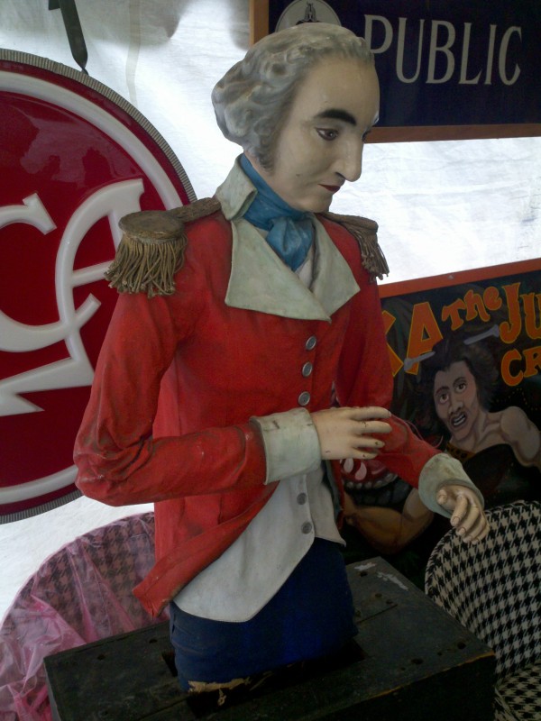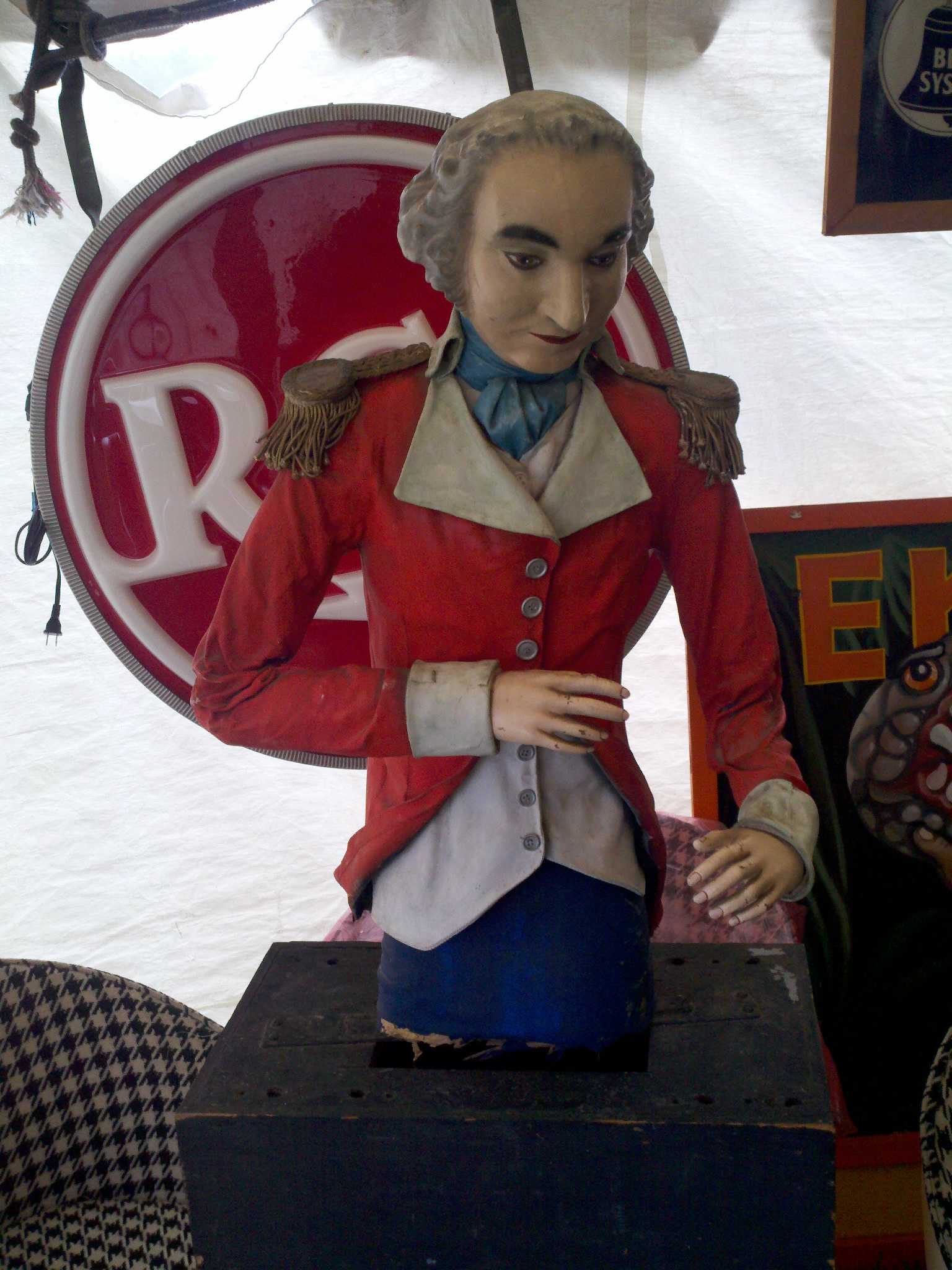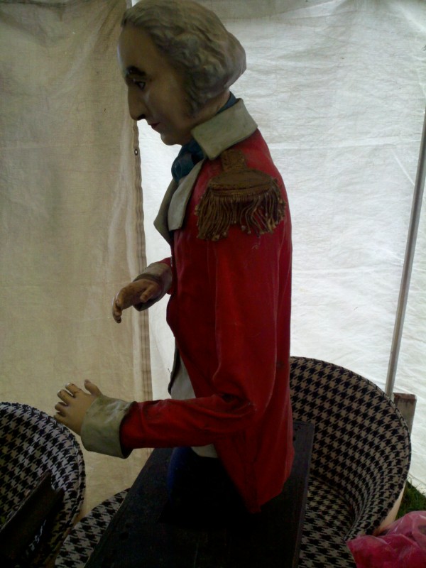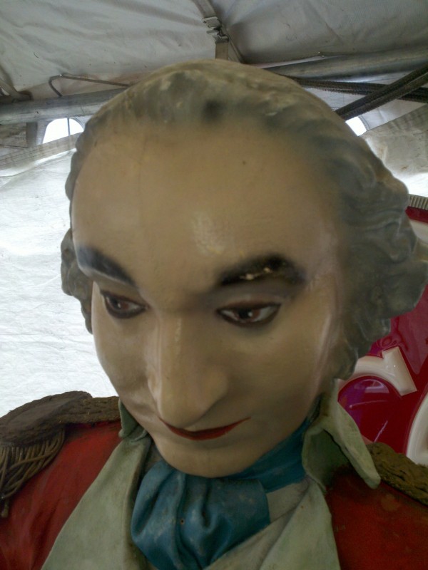 Early papier mache automaton in the likeness of George Washington. Great detail.  The motor that drives the figure is gone. Georges movement would have been side to side with perhaps a flag in his hand.  Believed to be an easy fix for anyone who repairs animated figures………..
