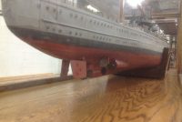 Custom made 1/96 scale model of German battleship in oak display case in as found condition. Built in the 1960’s, complete with building diagrams and instructions. Shows some minor wear. A very well made example of shipbuilding. Make this a focal point in any setting……….