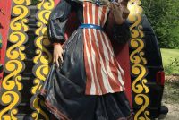 Giant Danbury Fair amusement park statues in as found condition. Massive figures measuring about 10′ high with real character. Made of canvas, oil cloth, fiberglass and heavy lacquer. Fair closed down in 1981. Figures may need some minor restoration. Your choice….