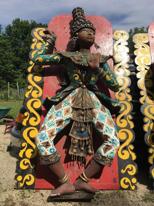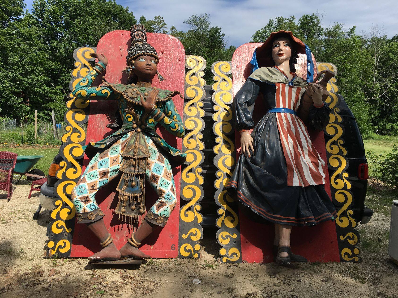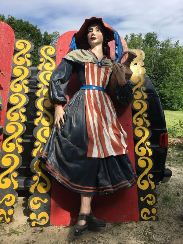 Giant Danbury Fair amusement park statues in as found condition. Massive figures measuring about 10′ high with real character. Made of canvas, oil cloth, fiberglass and heavy lacquer. Fair closed down in 1981. Figures may need some minor restoration. Your choice….