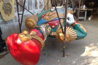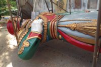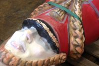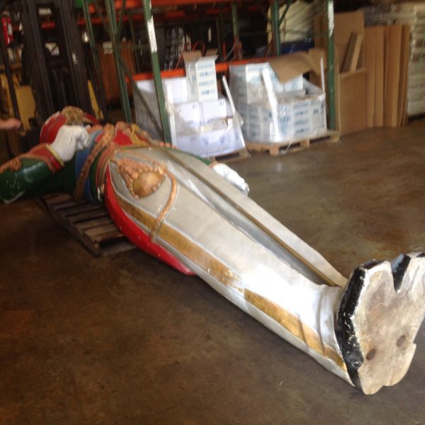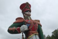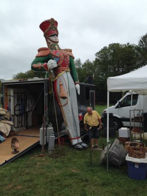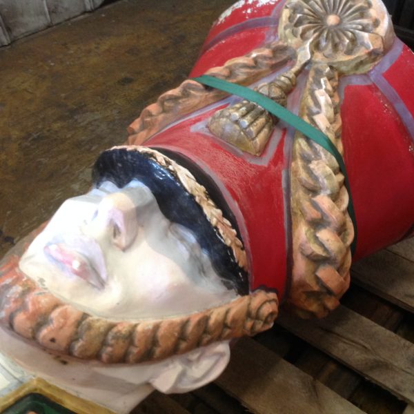 Giant vintage fiberglass amusement park Christmas Toy Soldier measuring almost 20′ tall. Just restored for years of outdoor pleasure. Same soldiers could be seen at Rockefeller Center years ago. Will make a fantastic Christmas display…………