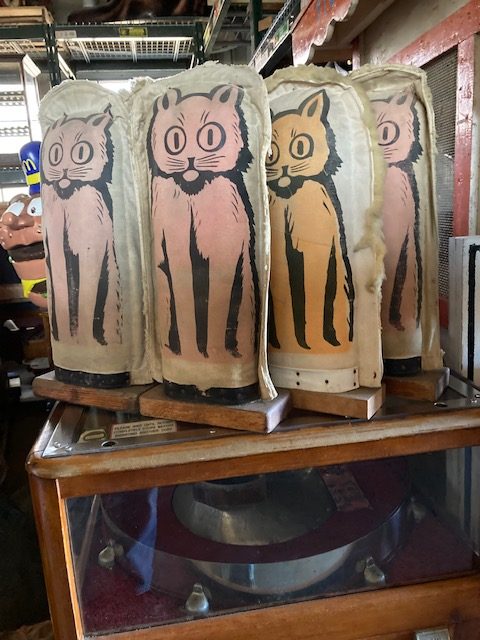 Group of 3 amusement carnival six cats in as found condition. Used condition showing signs of wear. These are getting harder to find. Buy when you can………….