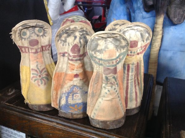 Group of 6 vintage canvas  antique knock down clowns in as found condition. Great graphics for such vintage clowns. Sold by the piece.