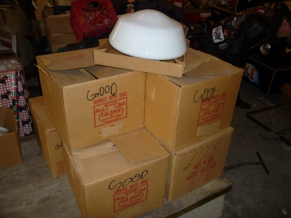 Grouping of old milk glass hanging shades. What a find. Email for sizes……..