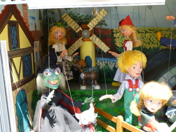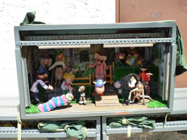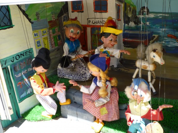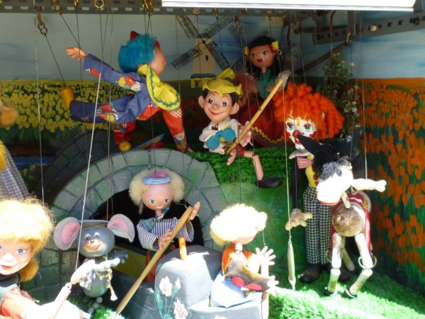 Group of three Pelham Puppet mechanical toy store displays in working condition. As found in a puppet buyout that have been stored away for over 25 years. Units have a few missing bulbs and some puppet strings may need to be reattached and adjusted. Nice examples……
