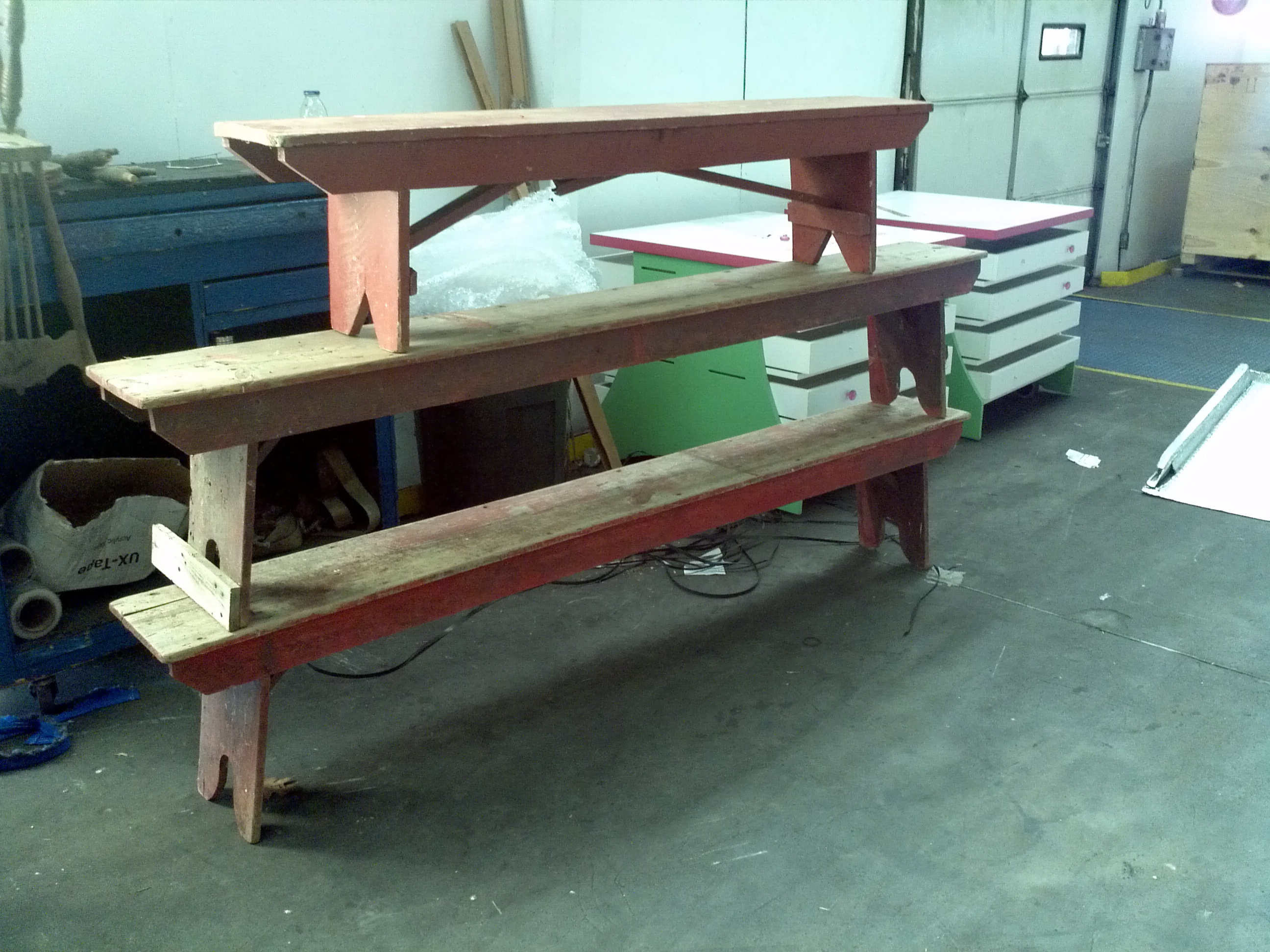 Group of three old primitive farmhouse benches in as found condition. Benches will need some minor attention but otherwise a good cleaning and their ready for displaying. Buy one or all three. Nice kitchen item………