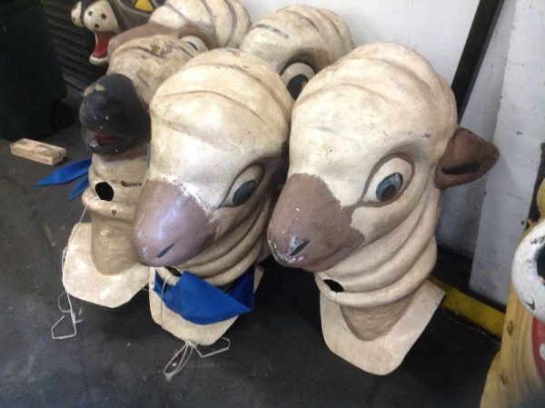Group fo vintage old fiberglass parade heads in as found condition. Stored away for yesrs untile we found them. Many to choose from in good condition. Prices vary…………